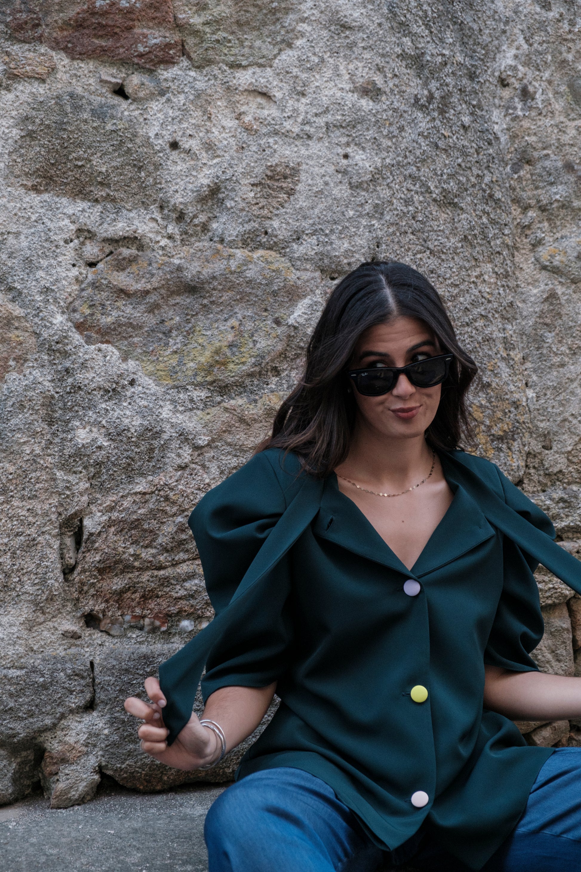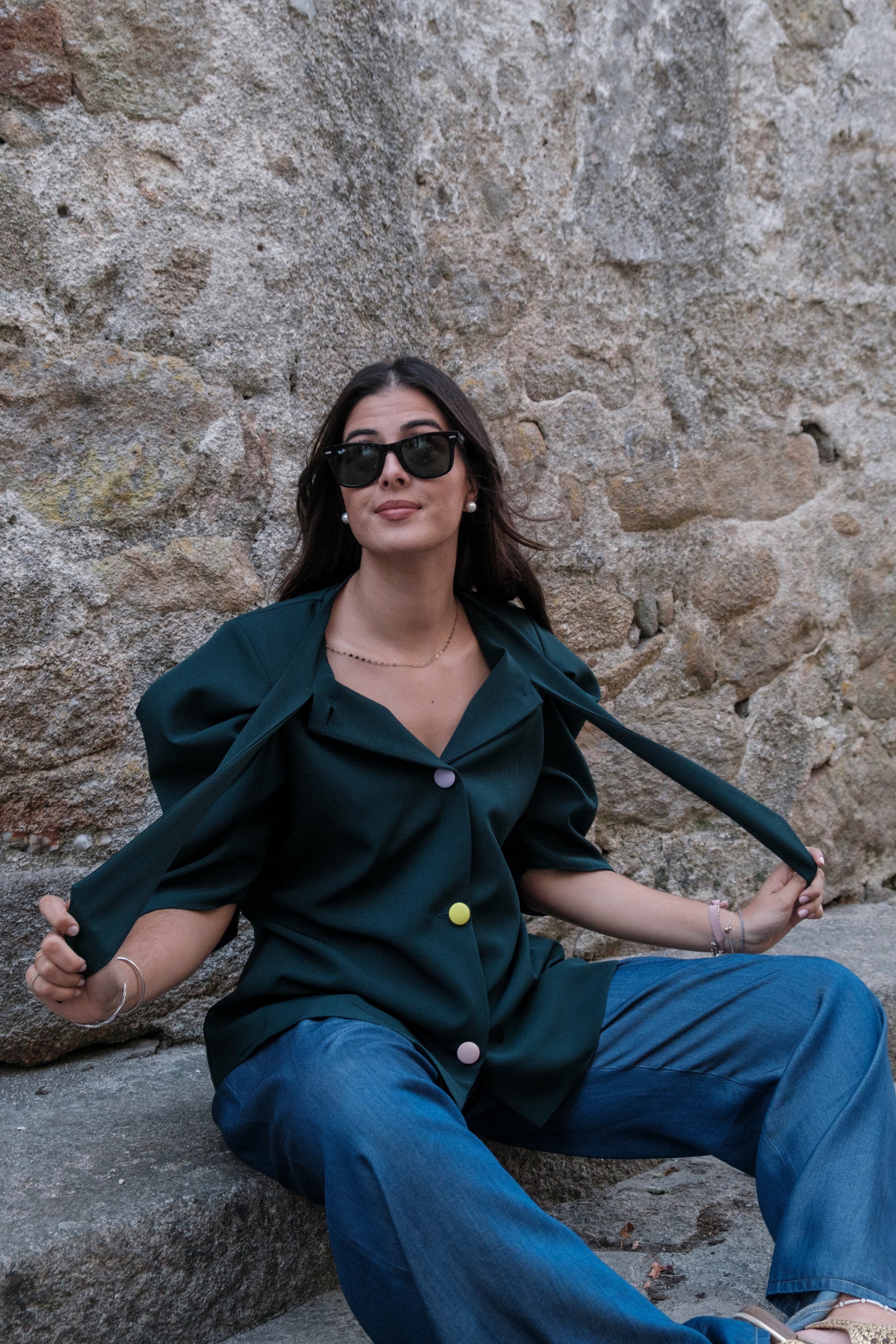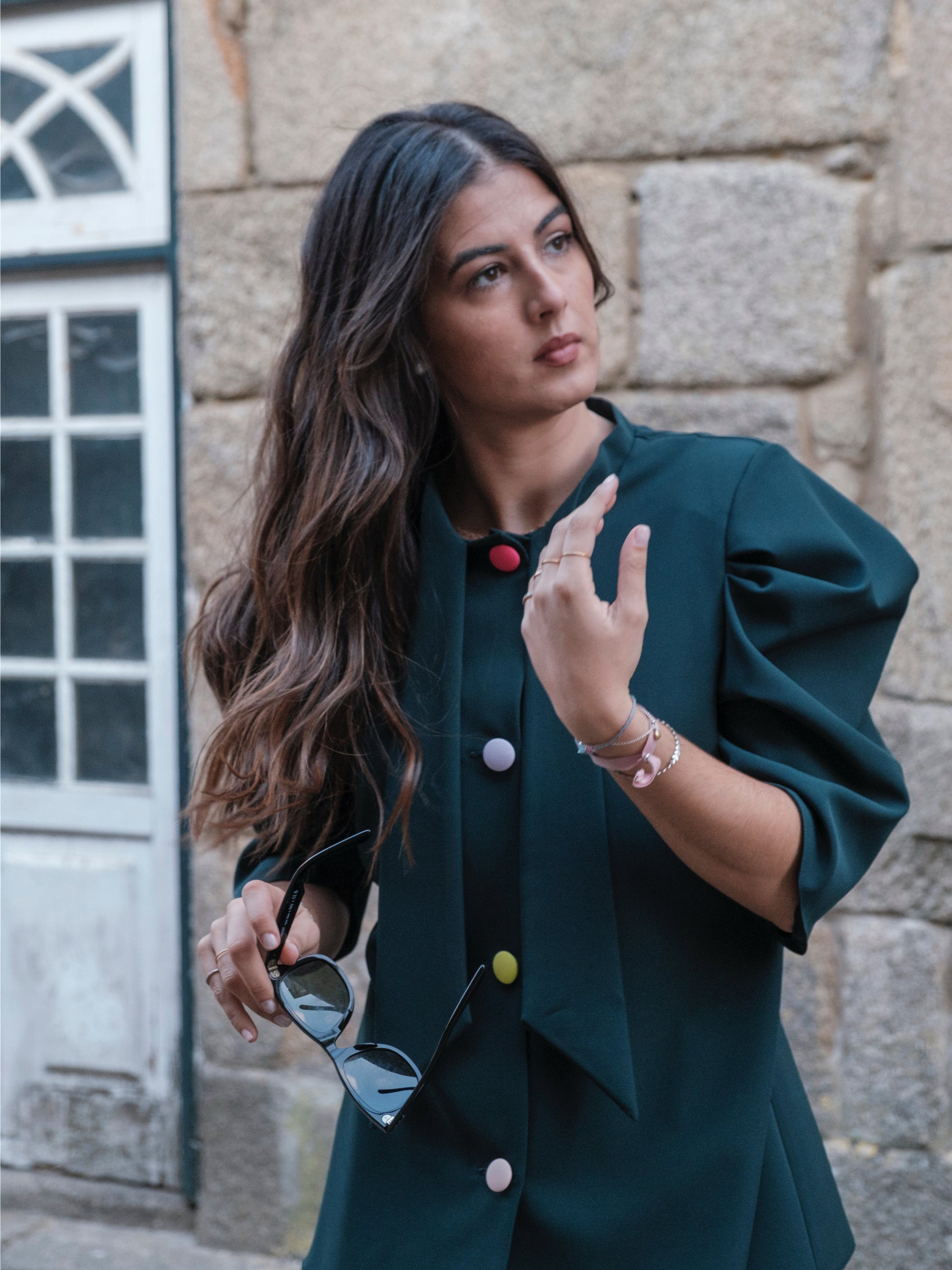 A blusa mais especial deste setembro. Com umas mangas que ninguém fica indiferente, é ligeiramente cintada com botões forrados coloridos
